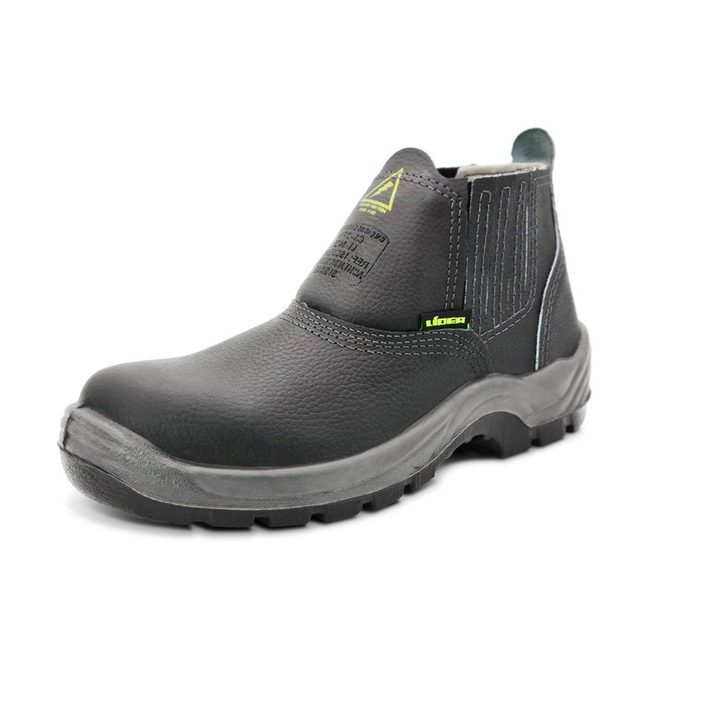 Botina de segurança em couro relax, com fechamento em elástico, com biqueira de segurança e solado bidensidade injetado direto ao cabedal.