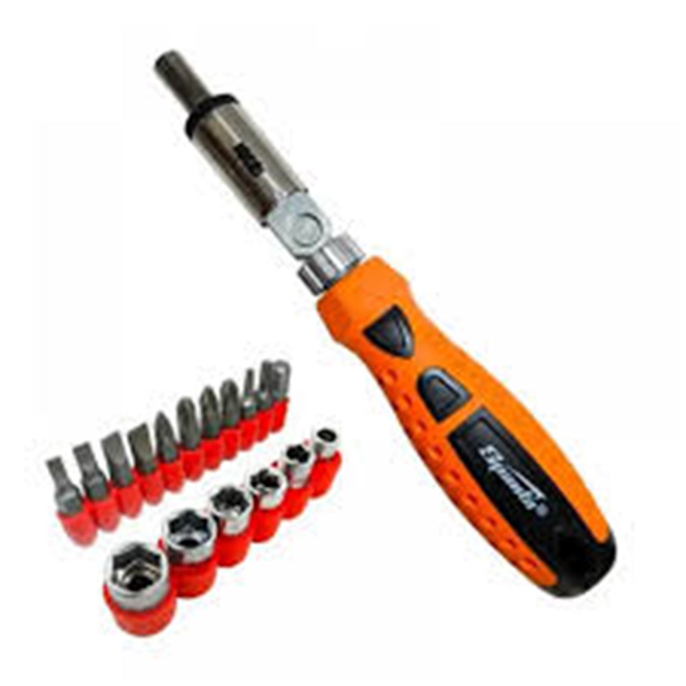 O Conjunto de Bits e Soquetes SPARTA destaca-se pela sua construção em aço cromo-vanádio de alta qualidade, assegurando durabilidade e desempenho excepcionais. Sua chave reversível de 1/4, com cabo ergonômico, oferece conforto superior durante o uso.