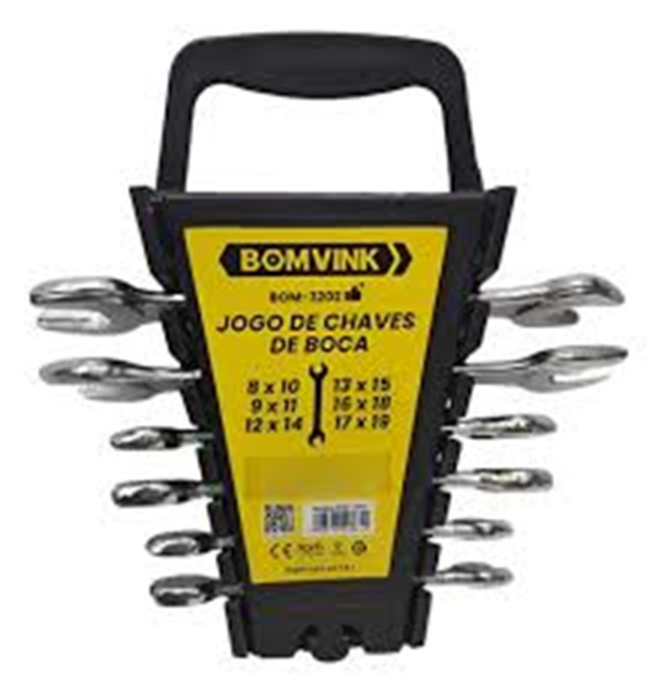 Jogo de Chave de Boca Fixa com 6 Peças 8 a 19mm Bomvik O Jogo de chave fixa 8 a 19 mm cromada 6 peças da BOMVINK feito em Aço com acabamento cromado.