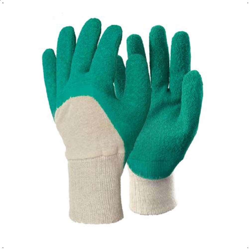 Fios de poliéster e algodão tricotados com revestimento em borracha látex.