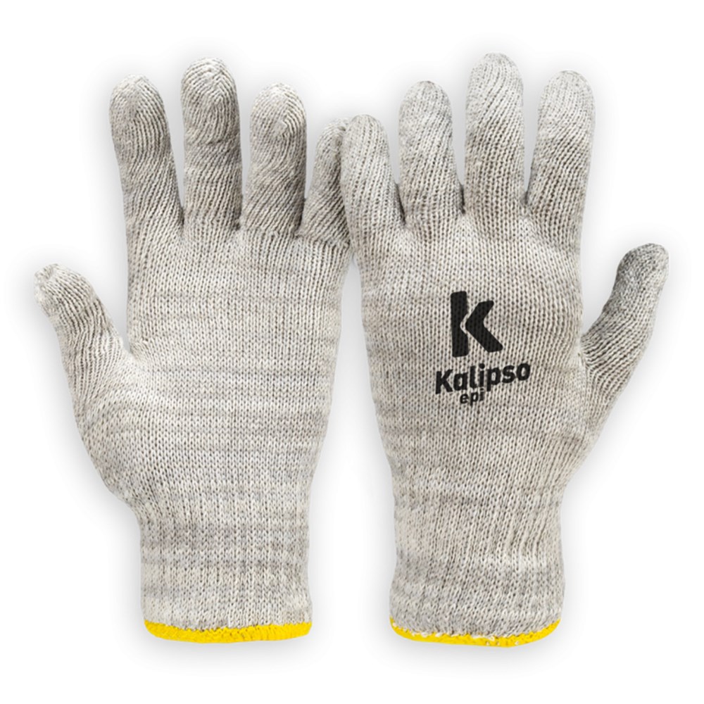 Luva de proteção, tricotada em os mesclados de algodã e poliéster. Punho em elástico com acabamento em overloque.