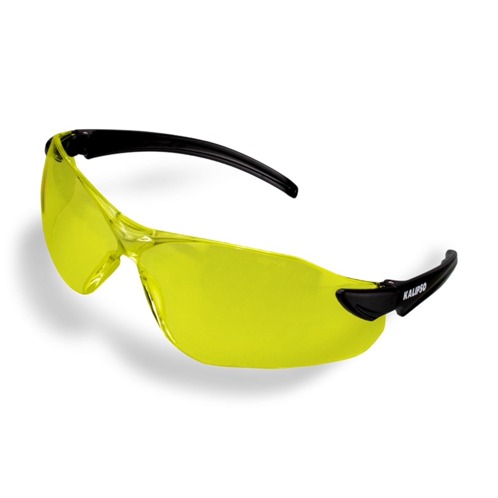 Óculos de proteção, constituído de armação e visor confeccionados em uma única peça de policarbonato, com apoio nasal injetado do mesmo material, hastes tipo espátula confeccionadas em náilon compostas de duas peças: suporte que se encaixa em um orifício localizado na lateral do visor (este suporte permite o ajuste do ângulo de inclinação da haste) e haste fixada ao suporte descrito anteriormente por meio de parafuso metálico.