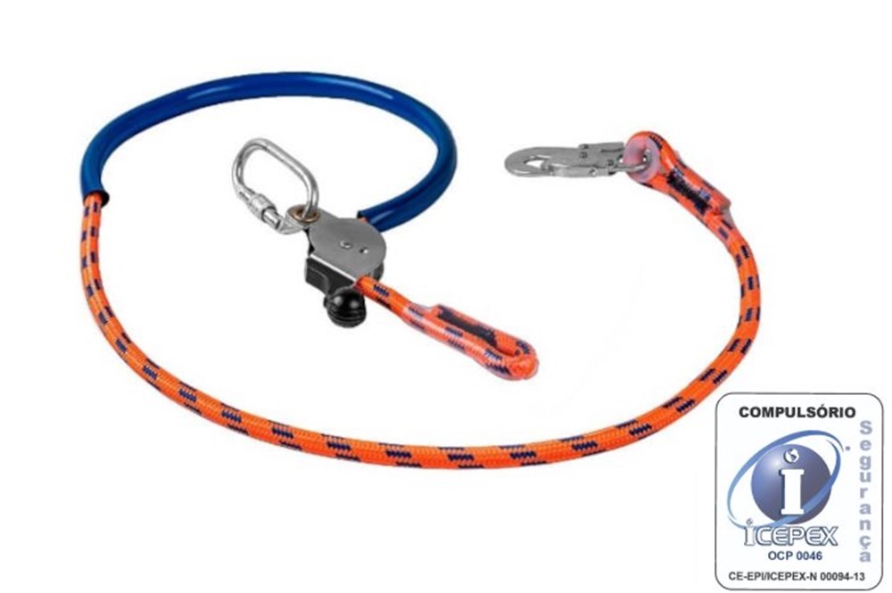 Talabarte para posicionamento e restrição regulável confeccionado em corda poliéster trançada de 14mm revestida com mangueira.